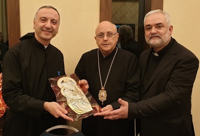 وفي نهاية كلمته قدم المطران درويش الى رئيس الجامعة الأب ميشال جلخ ايقونة مريم العذراء.